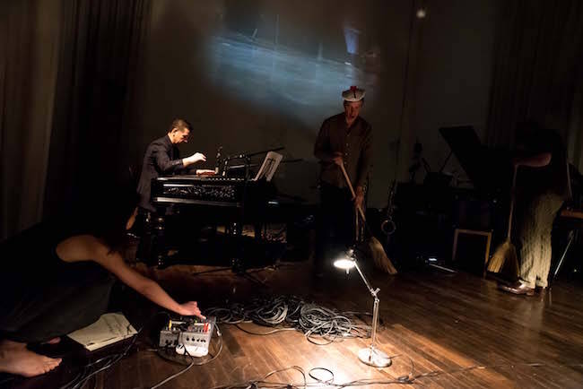 In "Low Flying Cloud" I perfom with musicians - Andre Vida, Miklos Lukacs, Tylor Savvy, visual artist Evelīna Deičmane Vida. We experiment with sound, form, movement and energy. It was visual exhibition with live music and video performance.