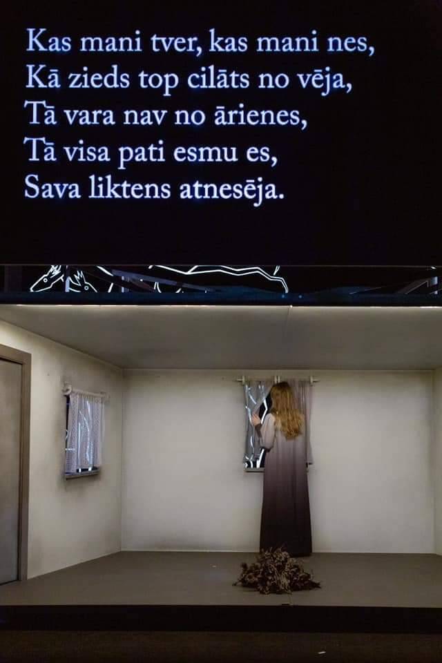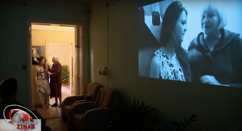Theater play by director Inga Tropa Fišere. The show took place in a 5 room apartment. Audience were sitting in one room with live video projection which helped to follow the actresses when they went to the other rooms. It become like theater play and one shot movie in same time.